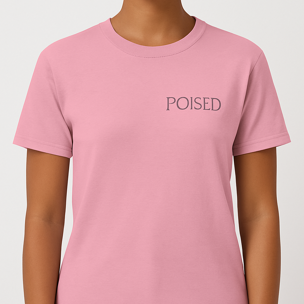 This soft, lightweight crew tee brings quiet confidence to everyday wear. Designed with a clean front “POISED” mark and a subtle “CALM. FOCUSED.” statement across the back, it delivers intention without noise.