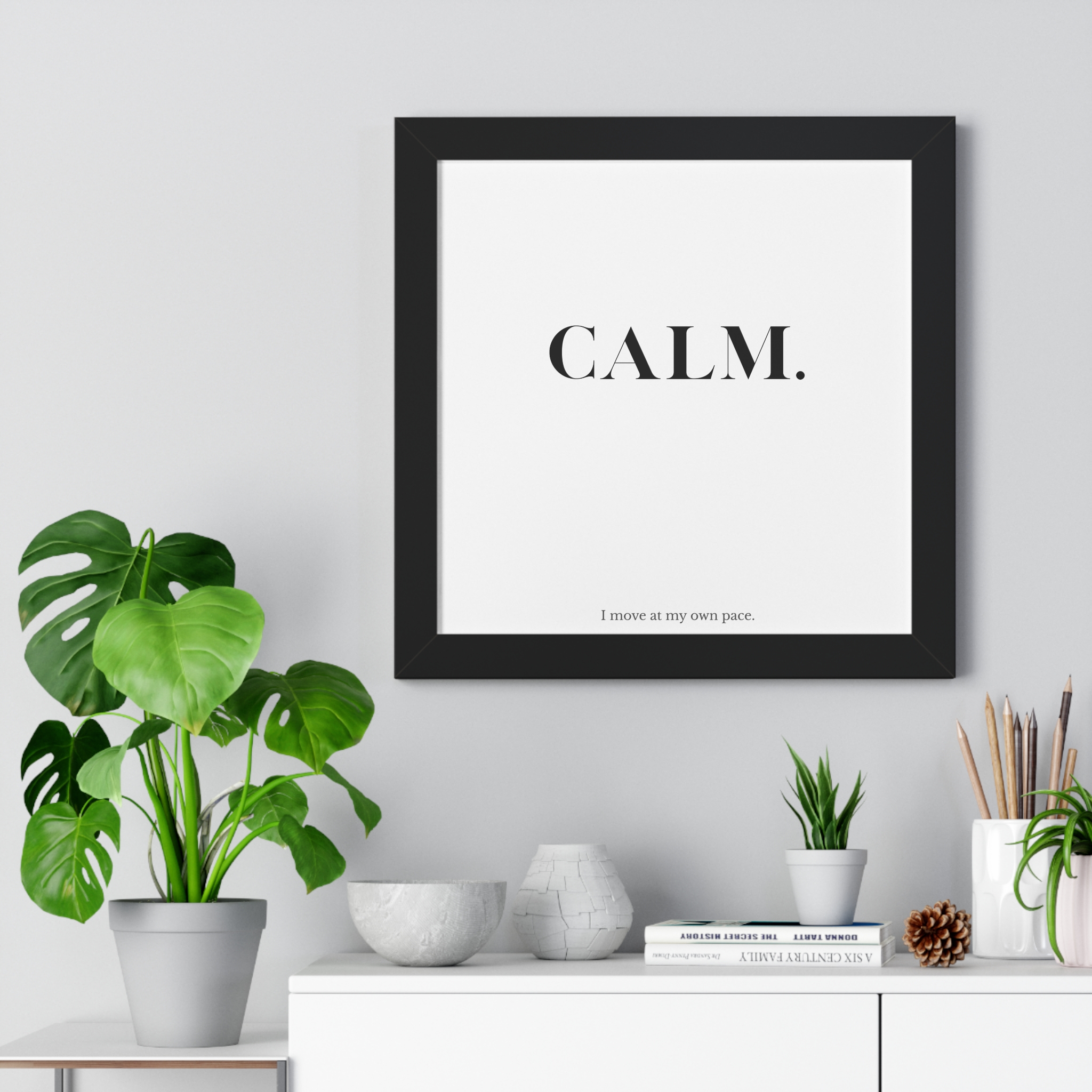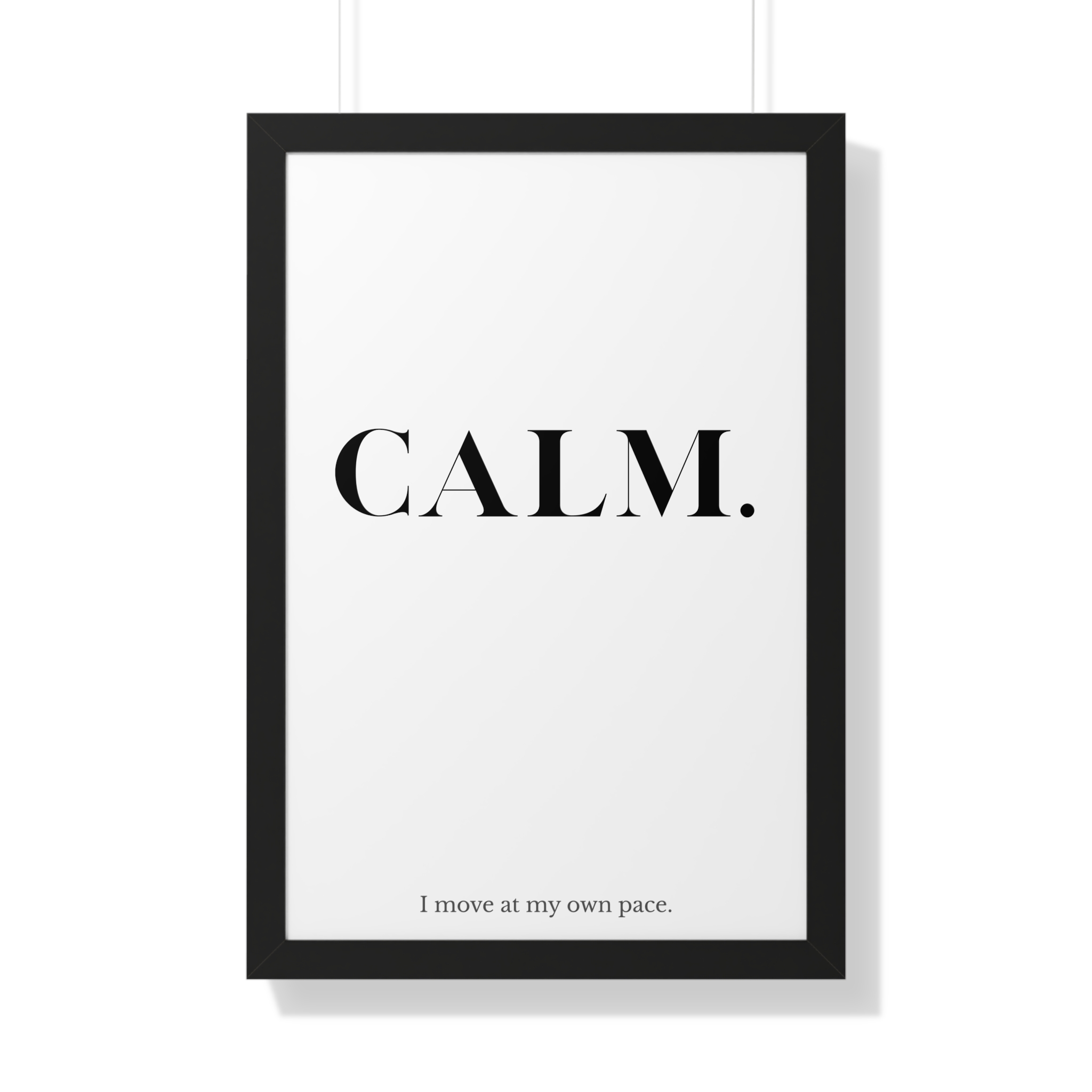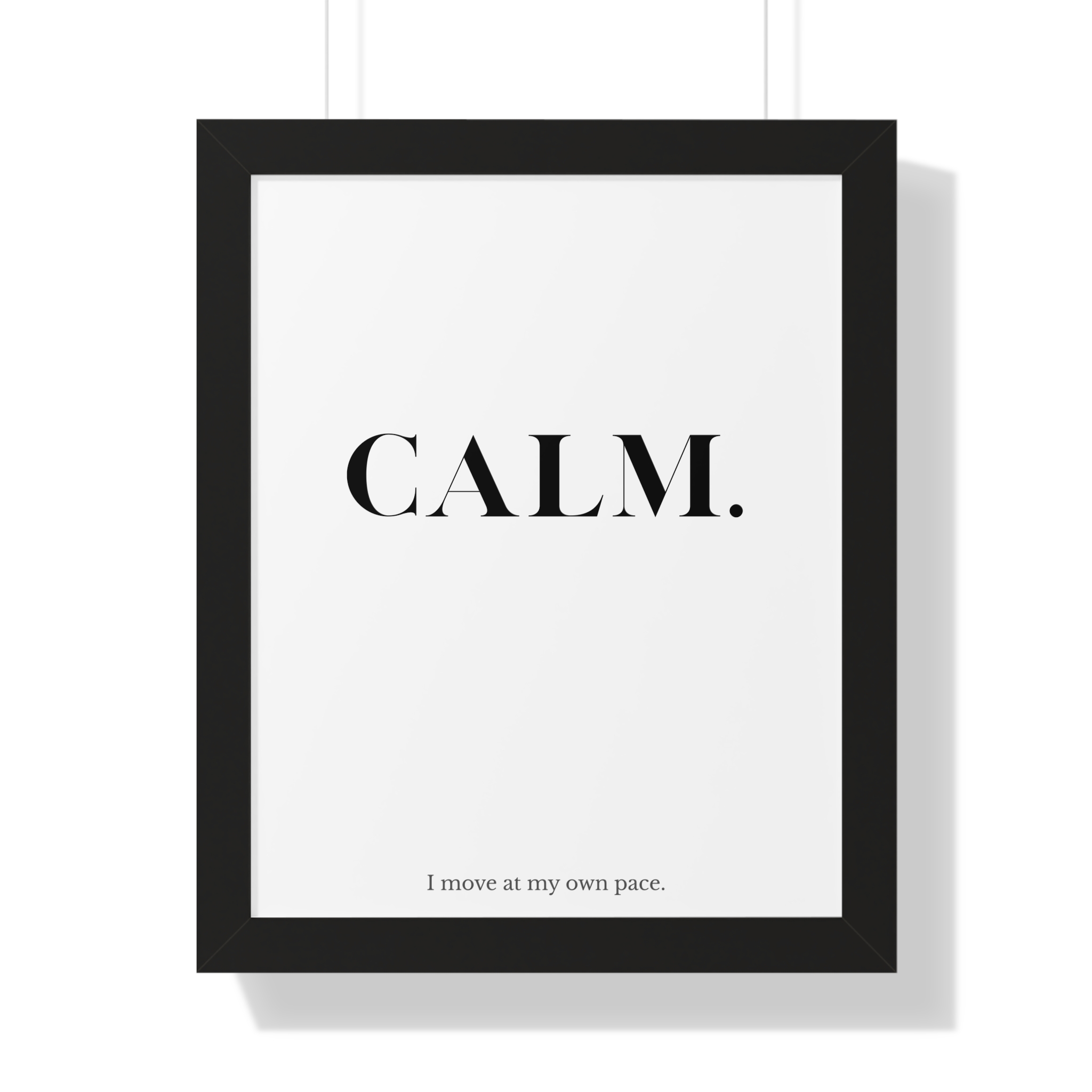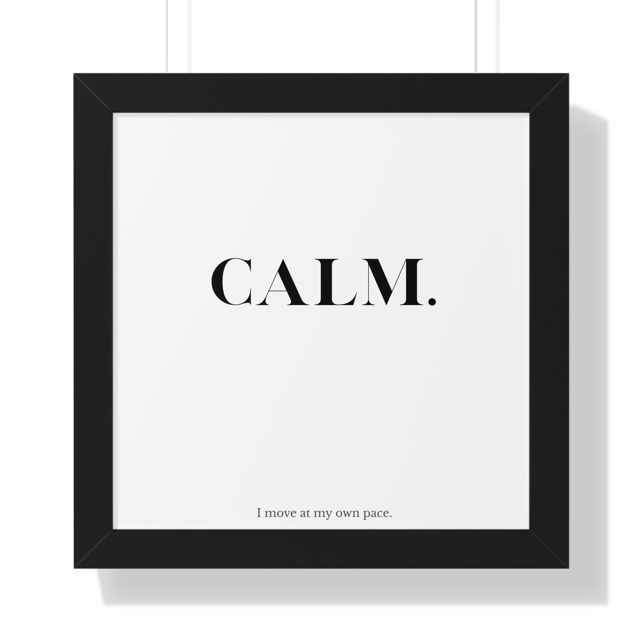 The CALM. framed poster is a minimalist affirmation piece designed to support steadiness, patience, and self-directed movement. Featuring bold serif typography paired with the reassuring line “I move at my own pace,” this artwork affirms that progress doesn’t need to rush to be meaningful.