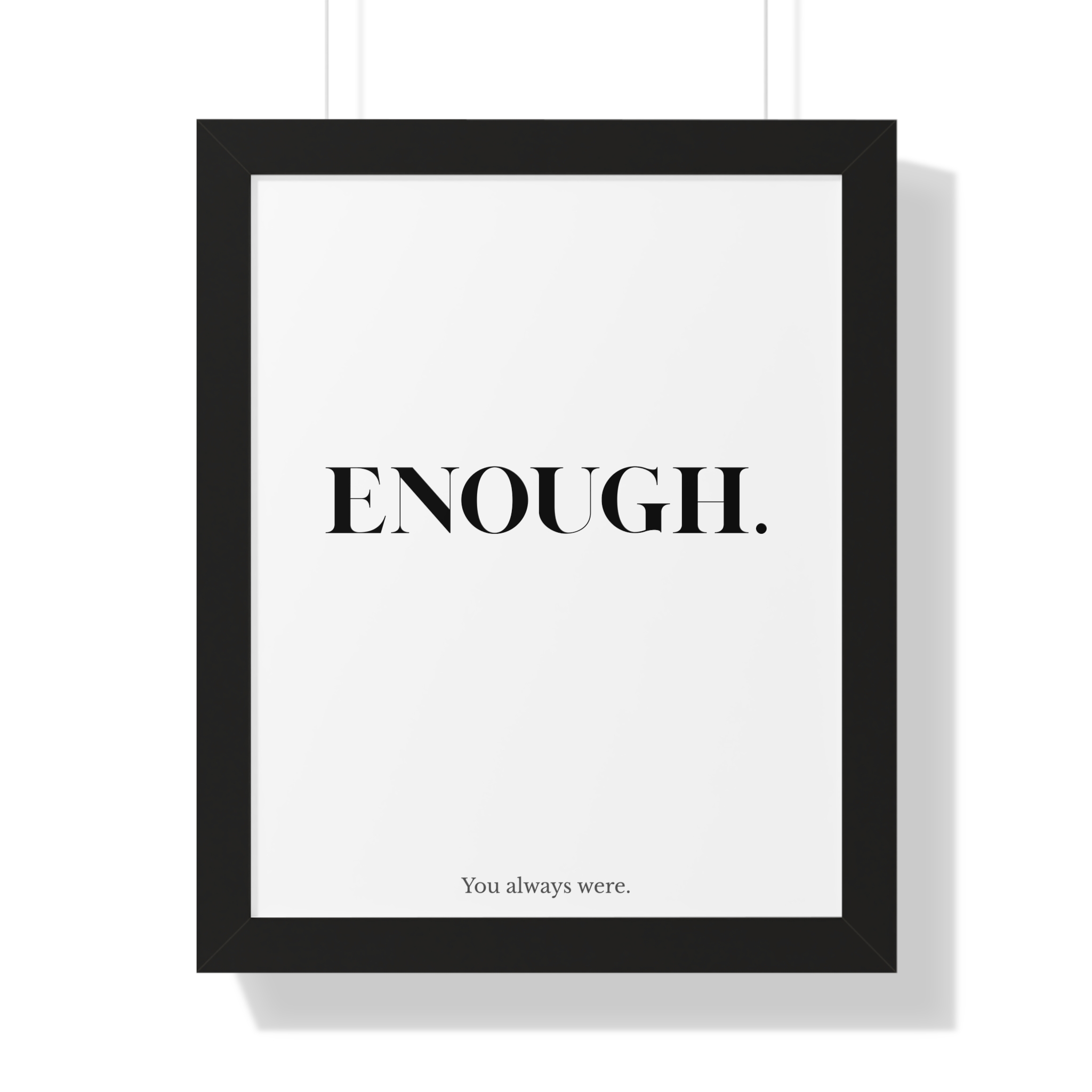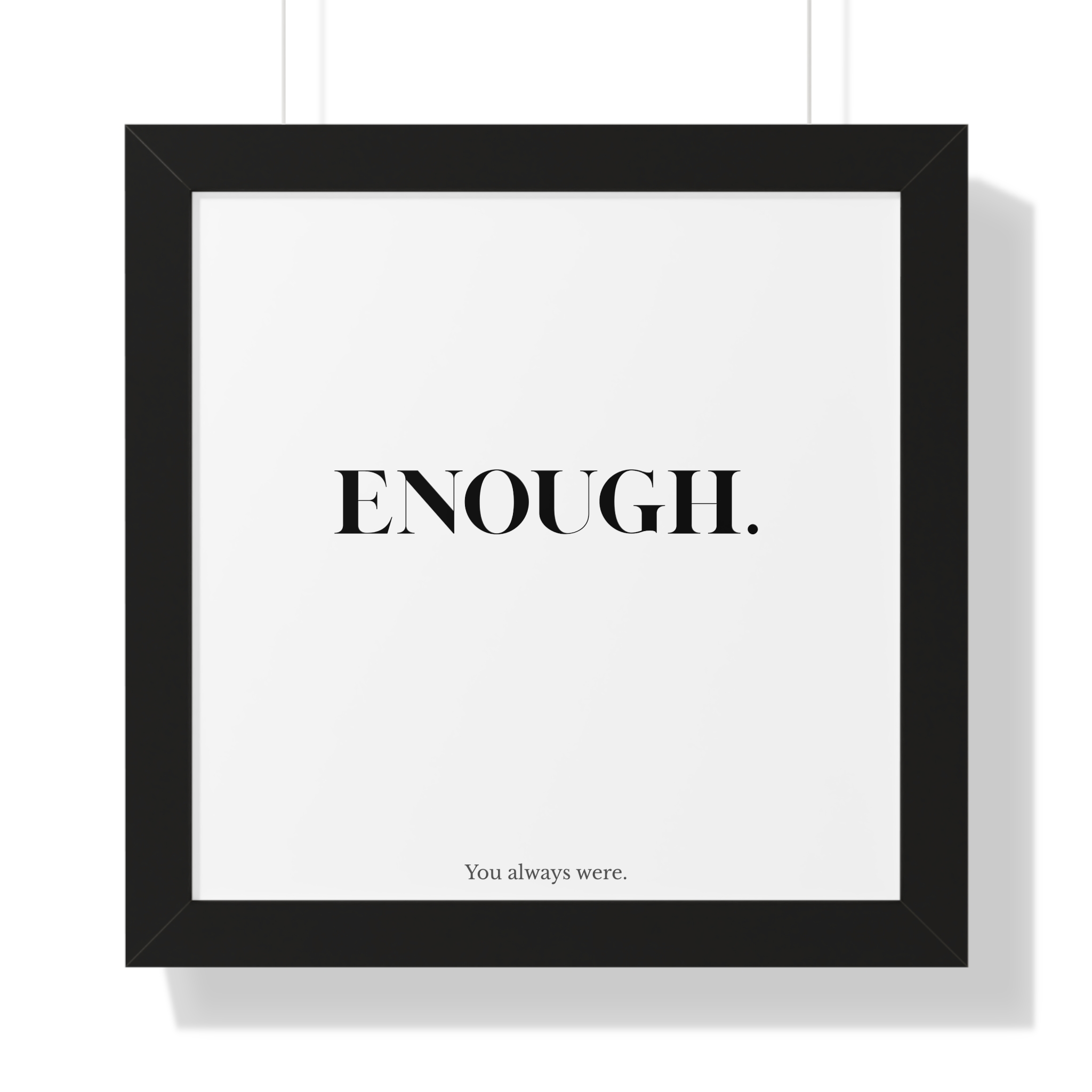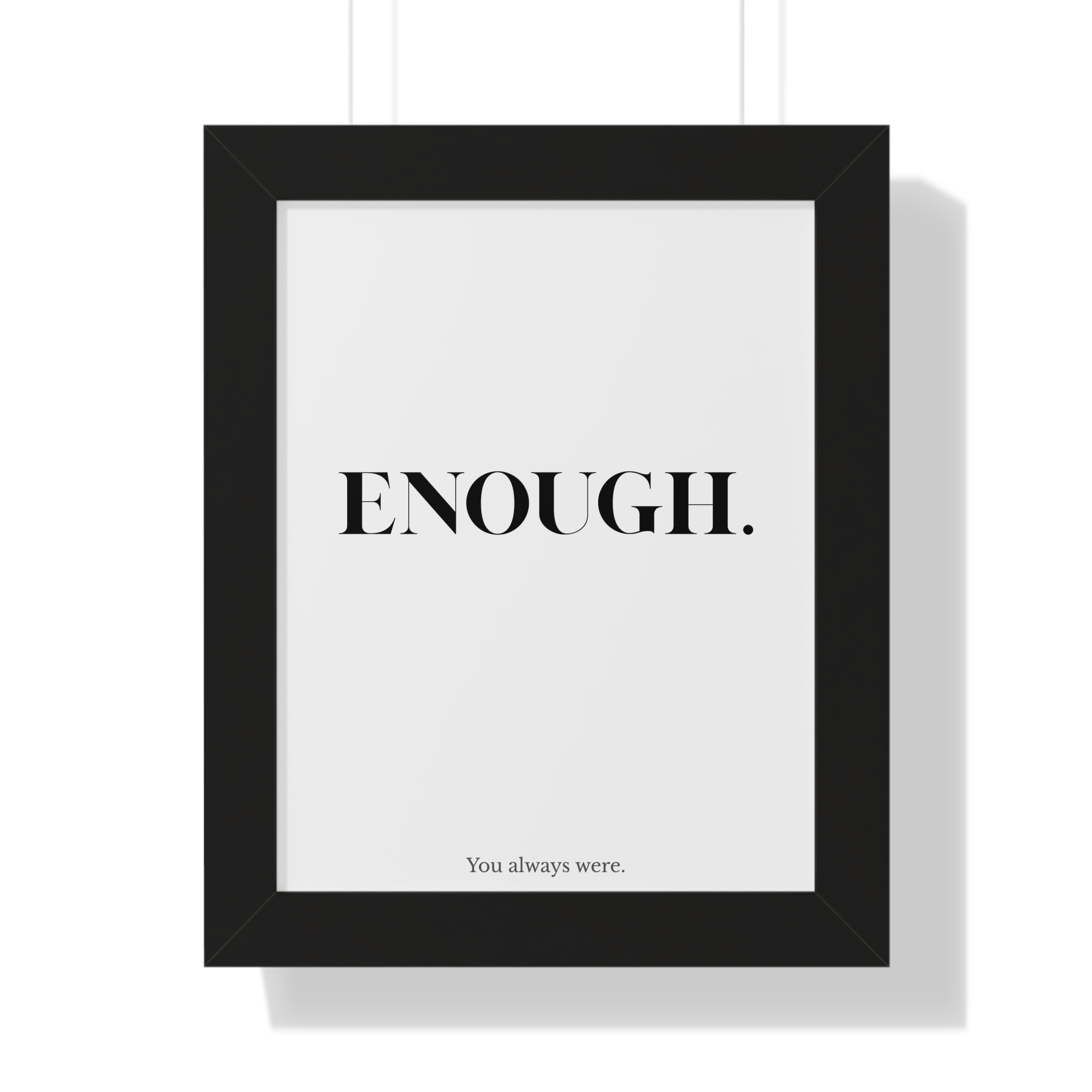 The ENOUGH. framed poster is a minimalist affirmation piece designed to anchor you in self-trust and quiet confidence. Featuring bold serif typography and a soft secondary line — “You always were.” — this artwork offers reassurance without overwhelm.