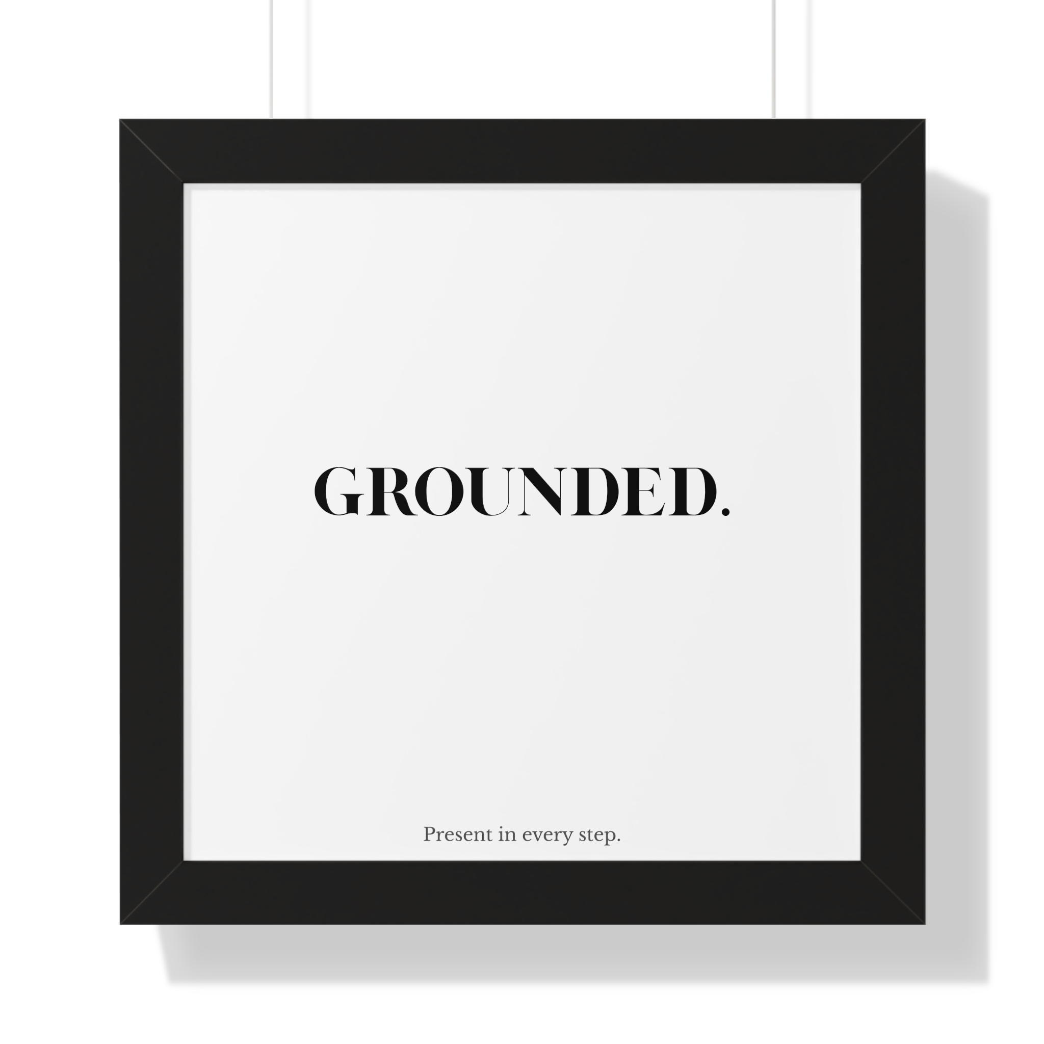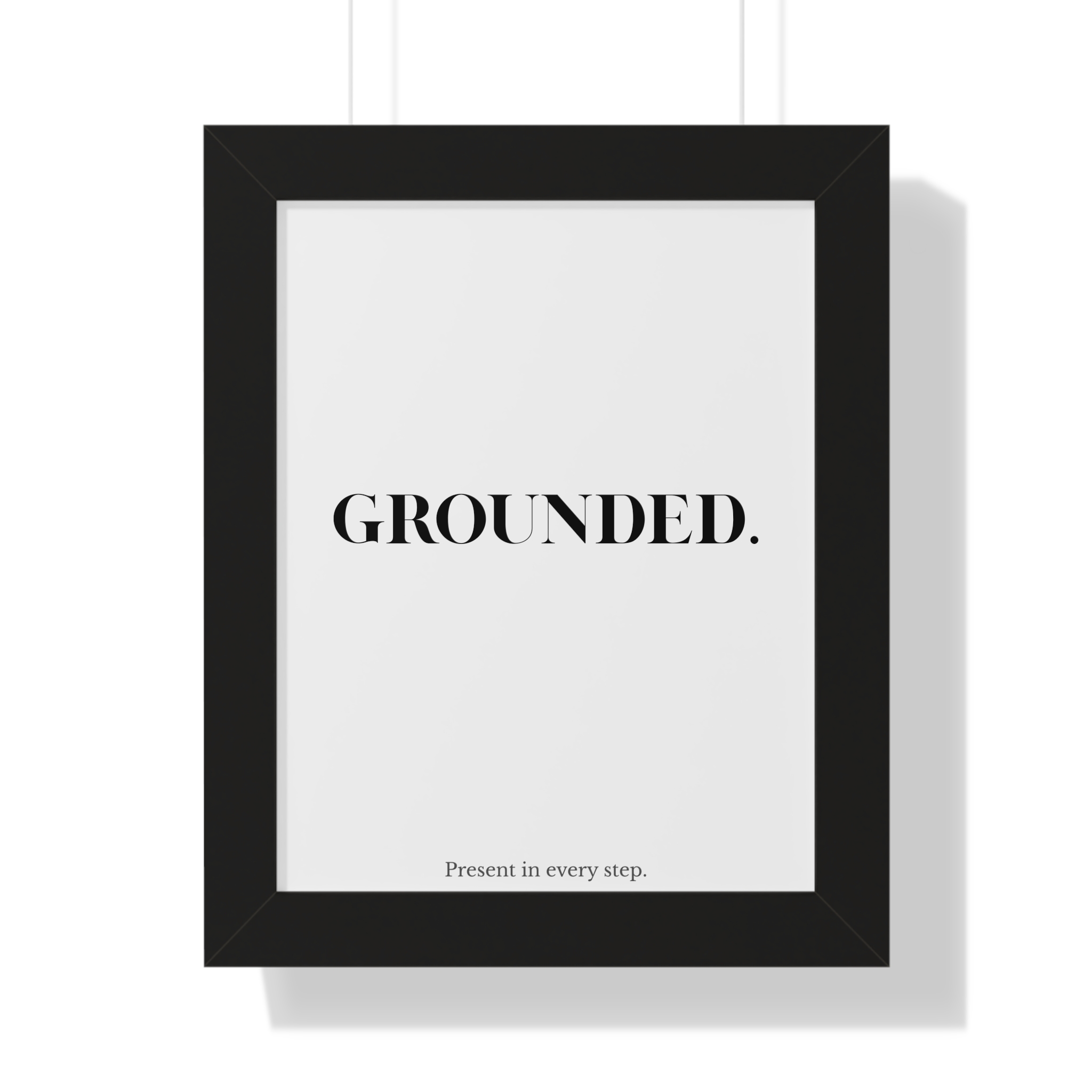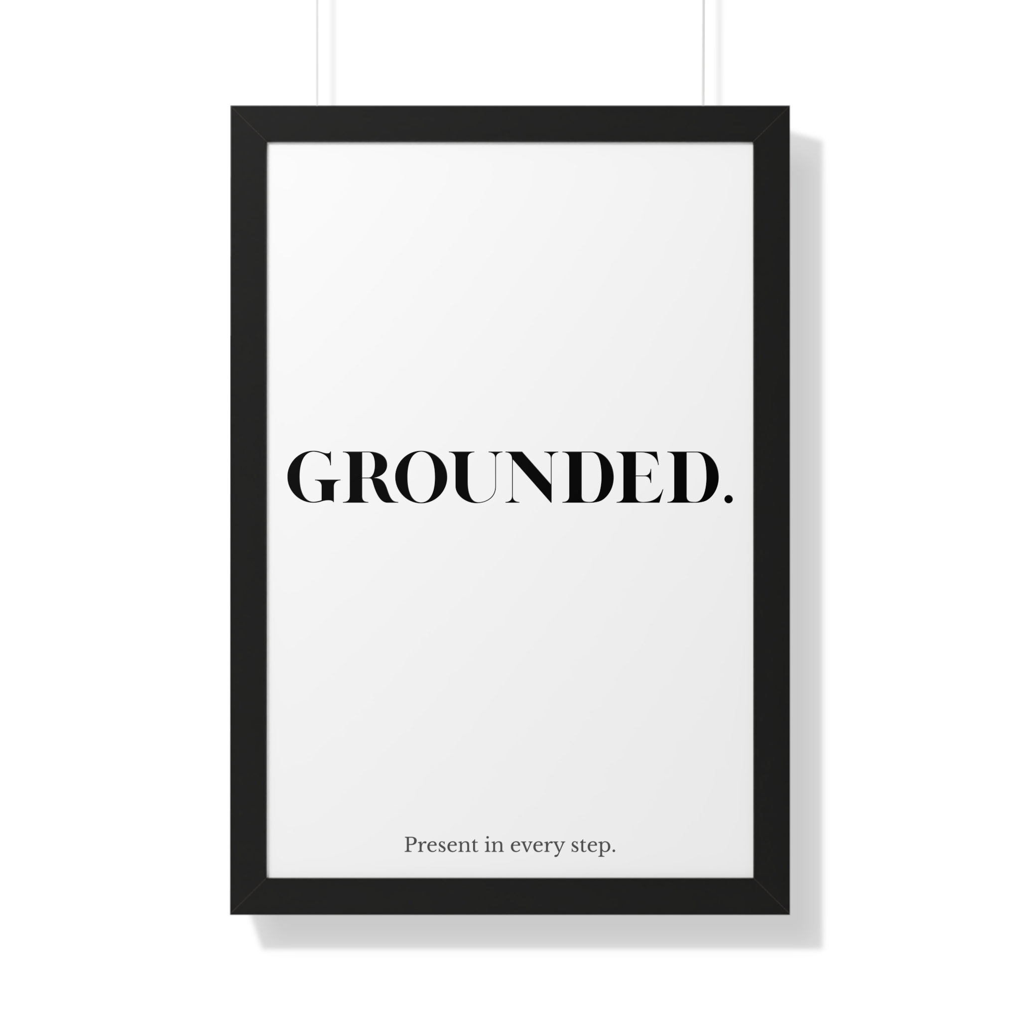 The GROUNDED. framed poster is a minimalist affirmation piece designed to encourage balance, stability, and mindful movement. Featuring bold serif typography paired with the gentle supporting line “Present in every step,” this artwork brings a sense of calm focus into everyday spaces.