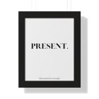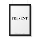 The PRESENT. framed poster is a minimalist affirmation piece created to anchor attention in the now. Featuring bold serif typography paired with the supportive line “This moment is enough,” this artwork offers reassurance without distraction.