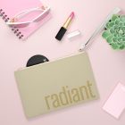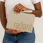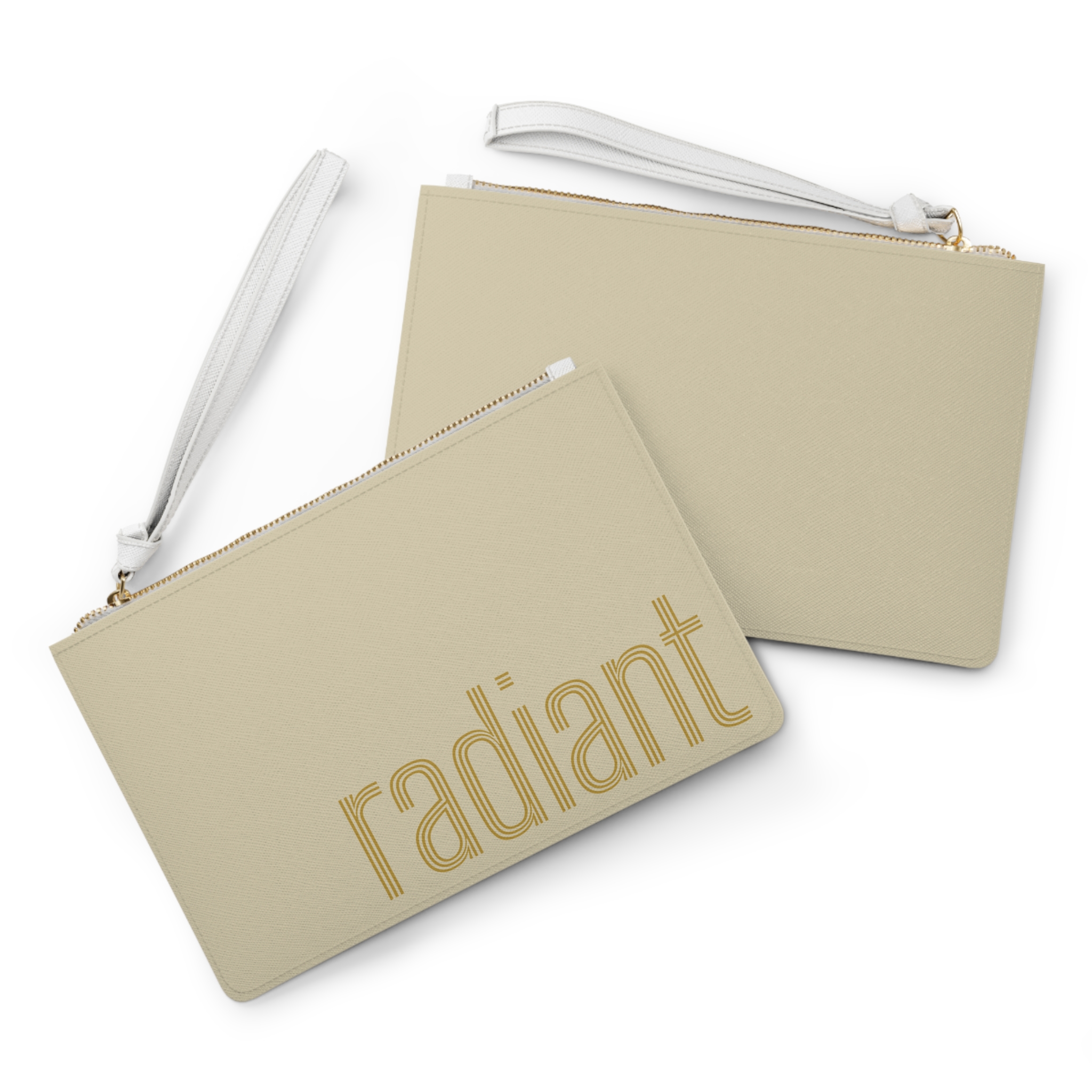 The Radiant Clutch Bag is crafted from structured Saffiano-textured PU leather, offering a polished look that feels lightweight and effortless in hand. The warm neutral tone pairs seamlessly with everyday outfits, while subtle gold lettering adds a soft glow—never loud, always intentional.