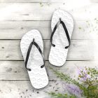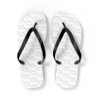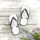 The plush polyester-suede footbed showcases crisp, long-lasting sublimation artwork while staying gentle underfoot. A lightweight 5/8″ EVA sole adds flexible cushioning, making them ideal for beach walks, poolside lounging, or casual errands. Finished with black PVC straps for contrast and a textured slip-resistant bottom, these flip flops balance simplicity, comfort, and quiet confidence.