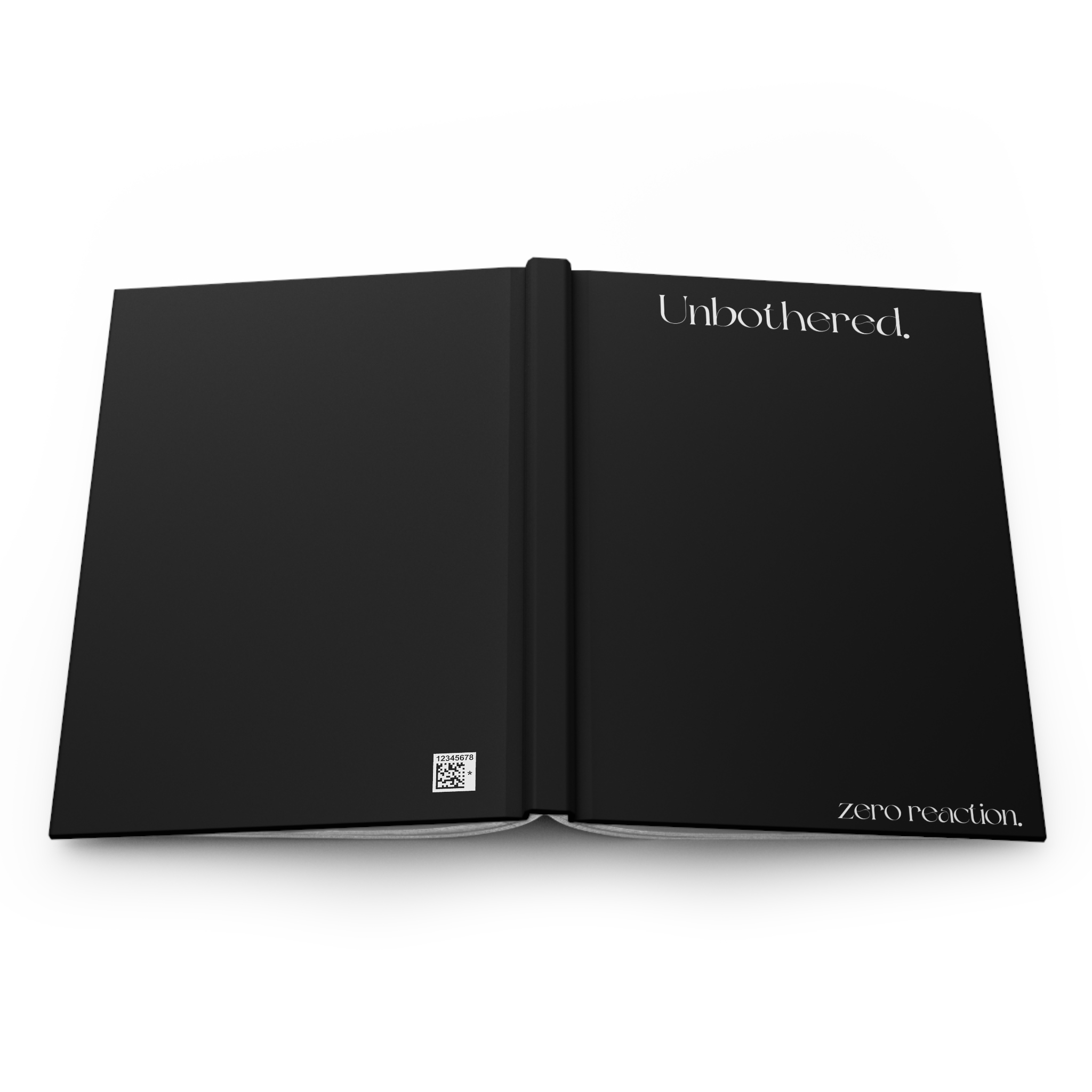 The unbothered.™ Hardcover Journal is designed as a quiet, personal space — a place where thoughts can exist without reaction. The matte black cover features a centered “unbothered.” as the anchor, with “zero reaction.” placed subtly at the bottom right, like a private reminder meant only for you.
